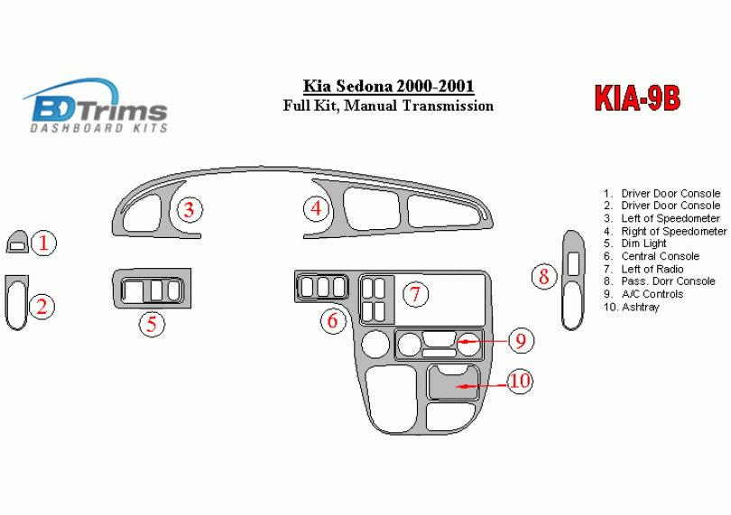 Kia Sedona 2000 - 2001 Dash Trim Kit