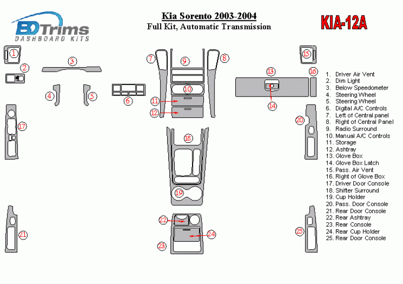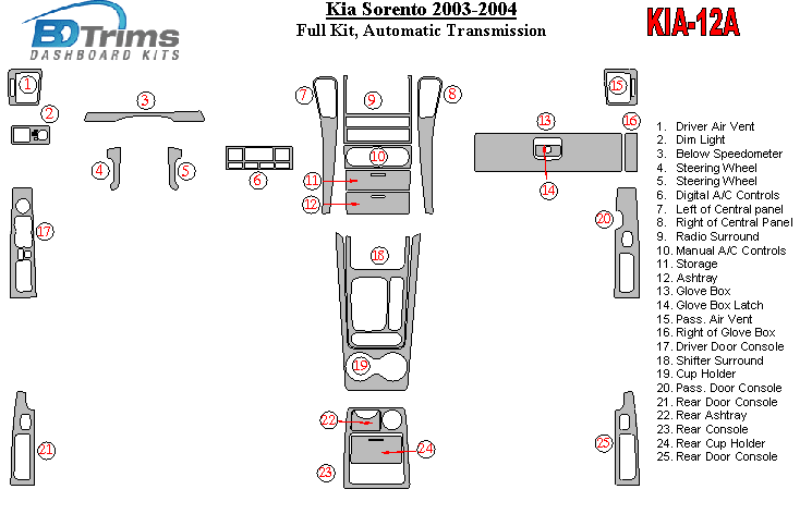 Kia Sorento 2003 - 2004 Dash Trim Kit