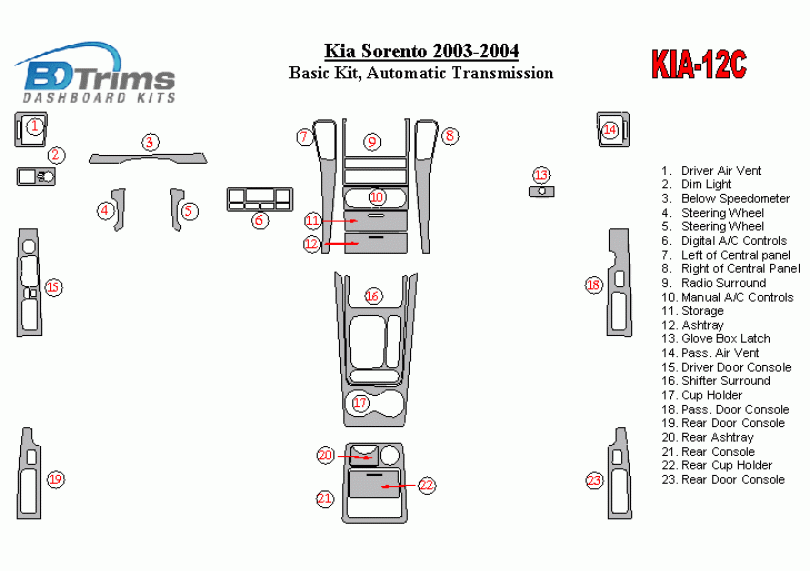 KIA Sorento 2003 - 2004 Dash Trim Kit