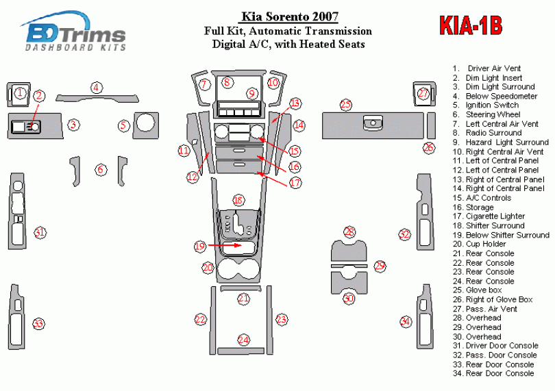 KIA Sorento 2007 - 2007 Dash Trim Kit