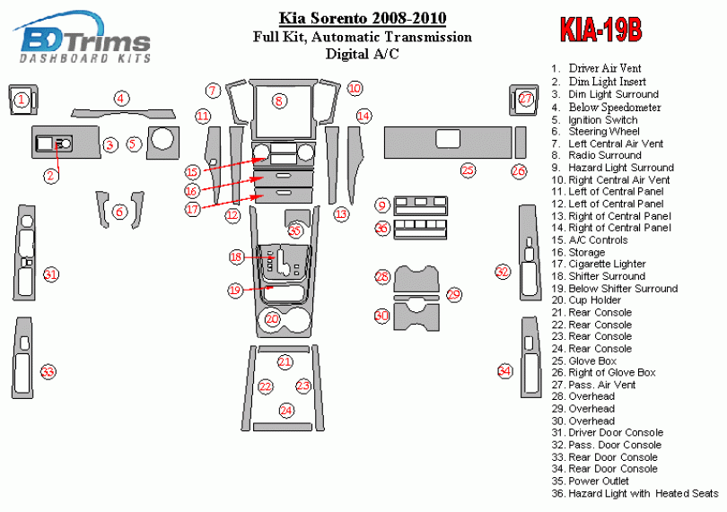 KIA Sorento 2008 - 2010 Dash Trim Kit