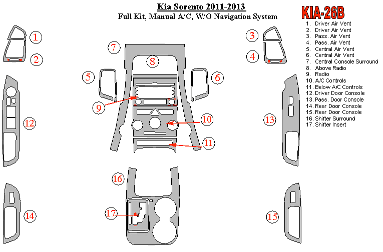 KIA Sorento 2011 - 2013 Dash Trim Kit