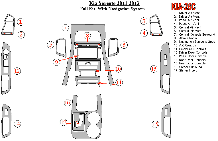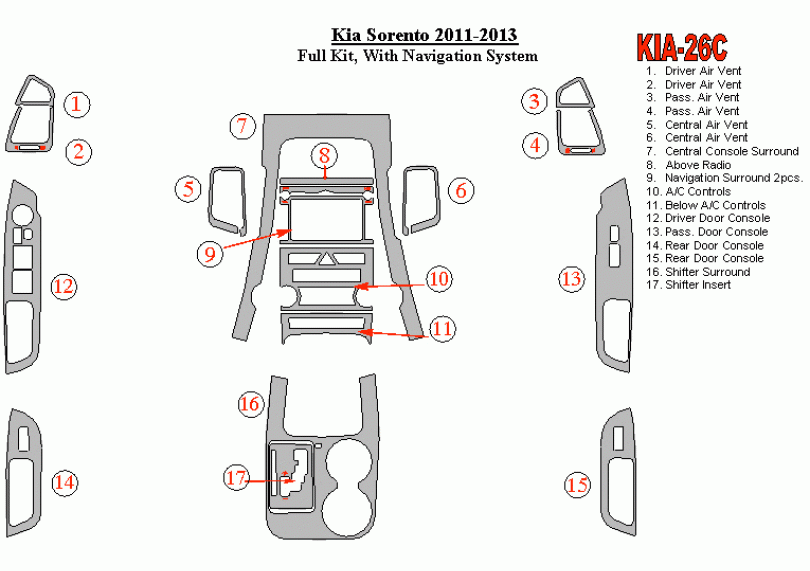 KIA Sorento 2011 - 2013 Dash Trim Kit