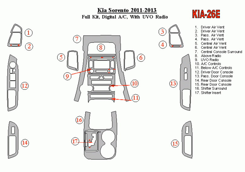 KIA Sorento 2011 - 2013 Dash Trim Kit