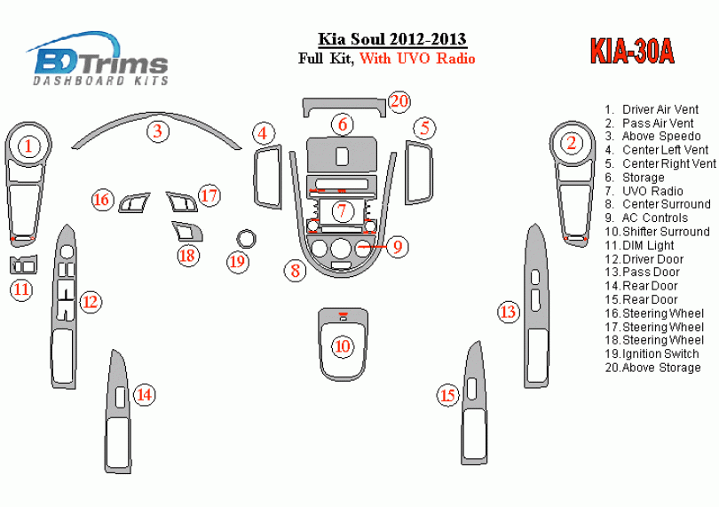 KIA Soul 2012 - 2013 Dash Trim Kit