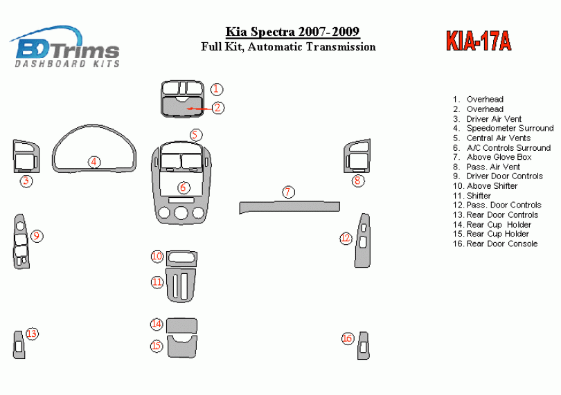 KIA Spectra 2007 - 2009 Dash Trim Kit