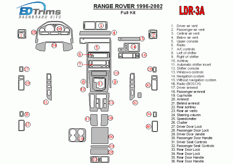 Land Rover Range Rover 1996 - 2002 Dash Trim Kit