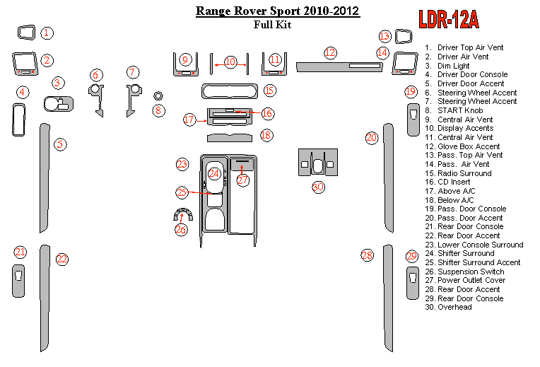 Land Rover Range Rover Sport 2010 - 2012 Dash Trim Kit
