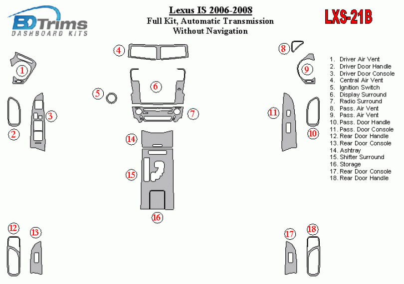 Lexus IS 2006 - 2008 Dash Trim Kit