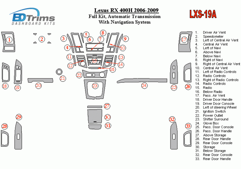 Lexus RX 400H 2006 - 2009 Dash Trim Kit