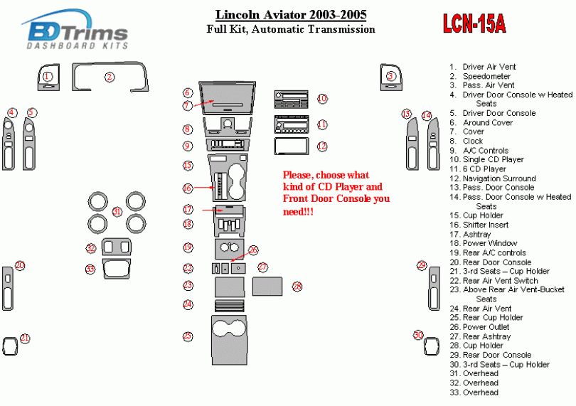 Lincoln Aviator 2003 - 2005 Dash Trim Kit
