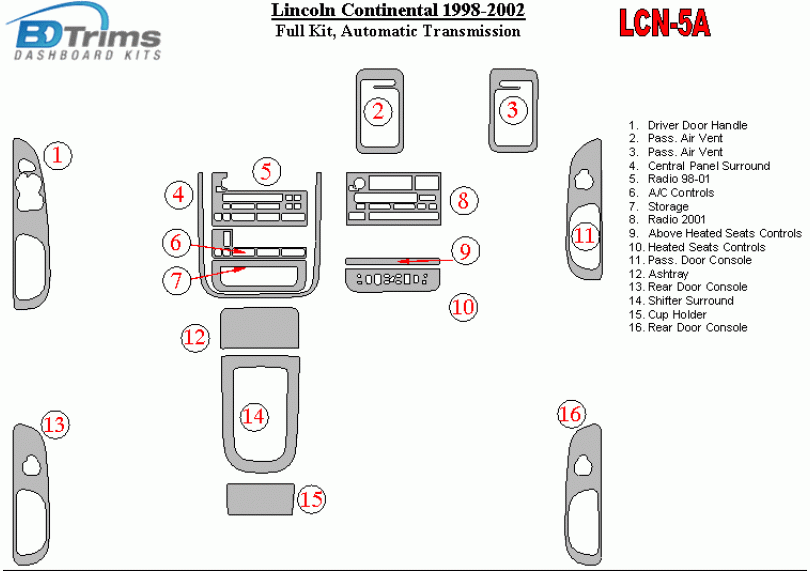 Lincoln Continental 1998 - 2002 Dash Trim Kit