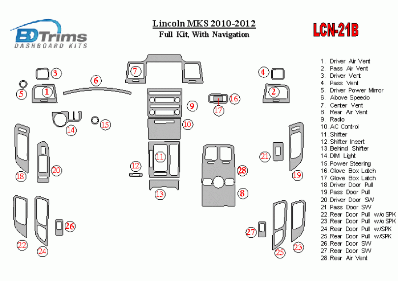 Lincoln MKS 2010 - 2012 Dash Trim Kit