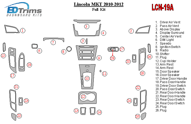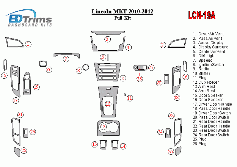 Lincoln MKT 2010 - 2012 Dash Trim Kit