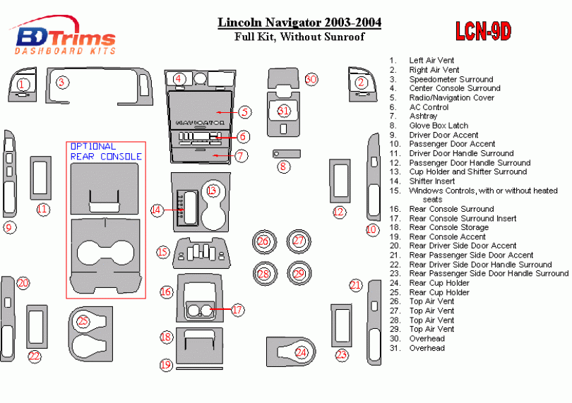 Lincoln Navigator 2003 - 2004 Dash Trim Kit