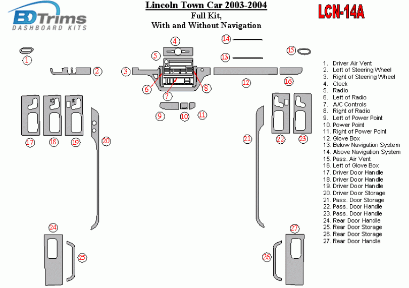 Lincoln Town Car 2003 - 2004 Dash Trim Kit