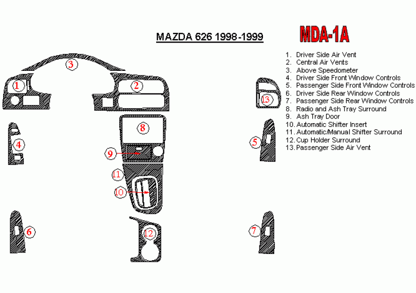Mazda 626 1998 - 1999 Dash Trim Kit