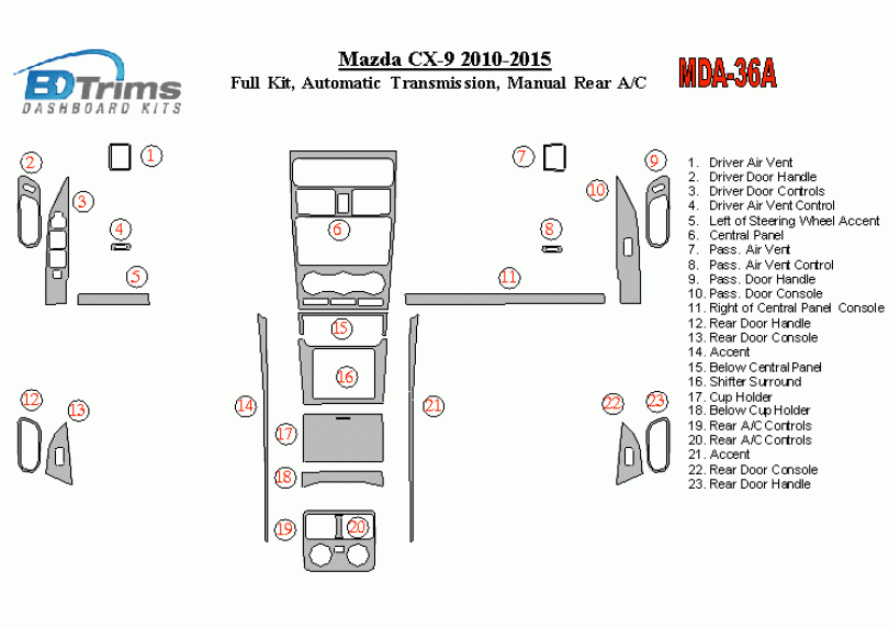 Mazda CX9 2010 - 2015 Dash Trim Kit