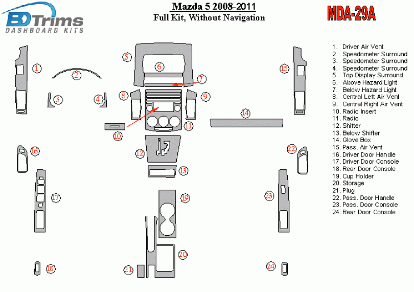 Mazda Mazda5 2008 - 2011 Dash Trim Kit