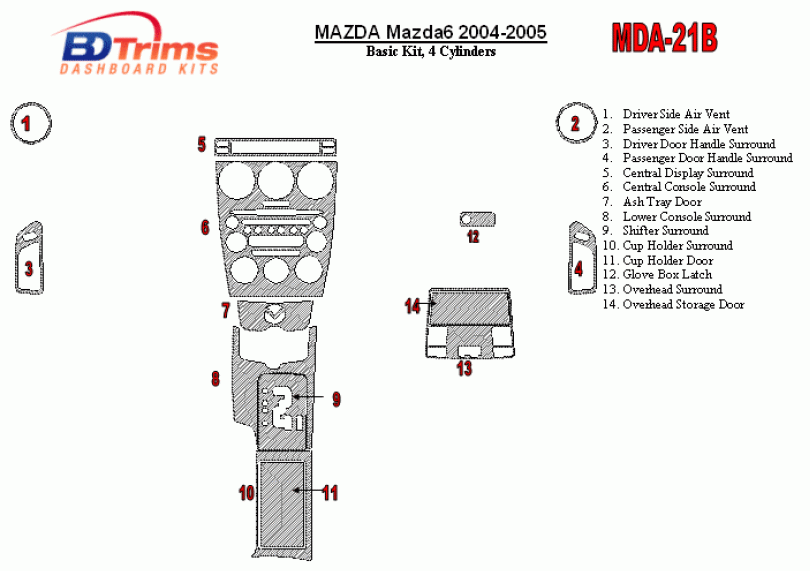 Mazda Mazda6 2004 - 2005 Dash Trim Kit