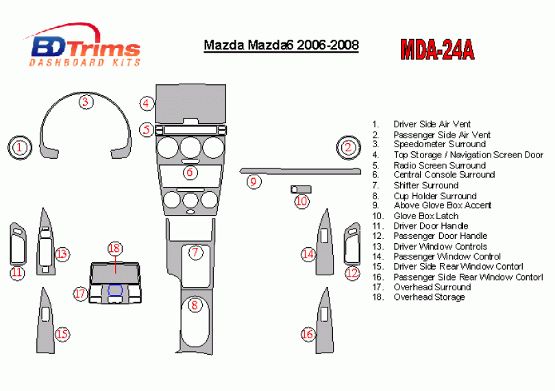 Mazda MAzda6 2006 - 2008 Dash Trim Kit