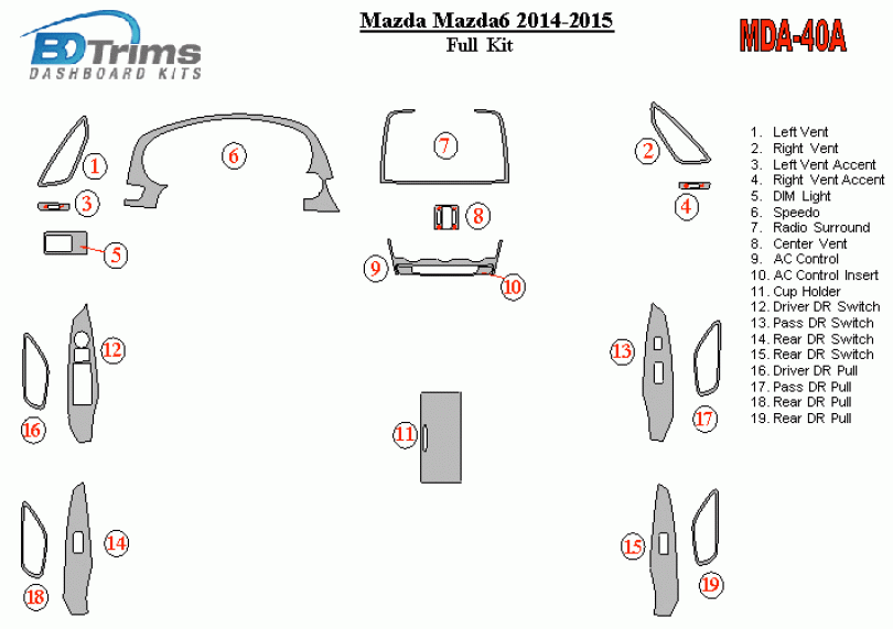 Mazda Mazda6 2014 - 2015 Dash Trim Kit