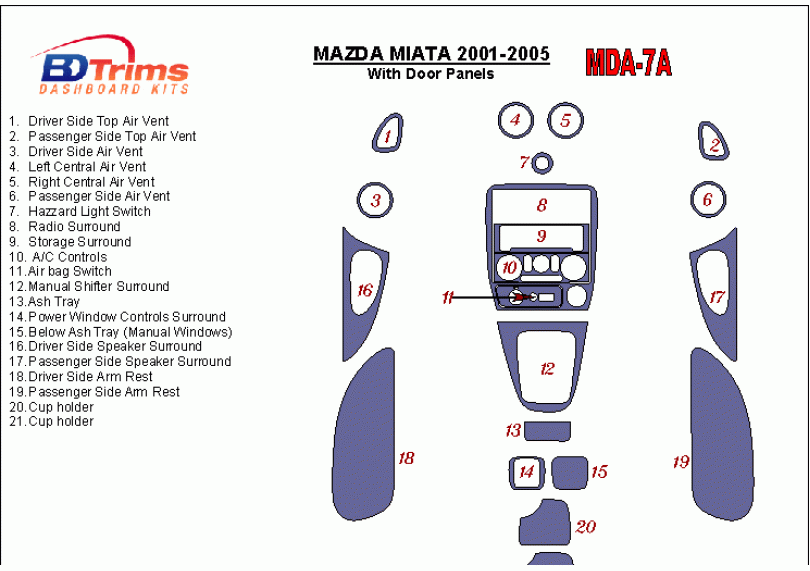 Mazda Miata 2001 - 2005 Dash Trim Kit