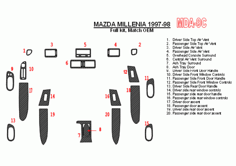 Mazda Milenia 1997 - 1998 Dash Trim Kit