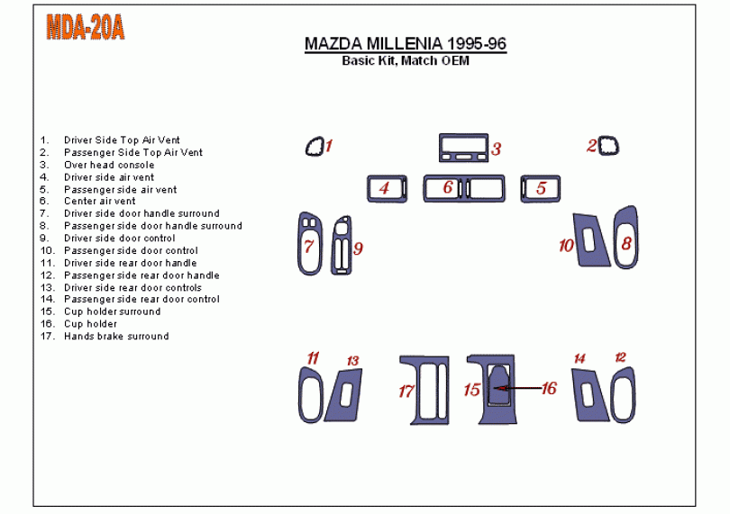 Mazda Millenia 1995 - 1996 Dash Trim Kit