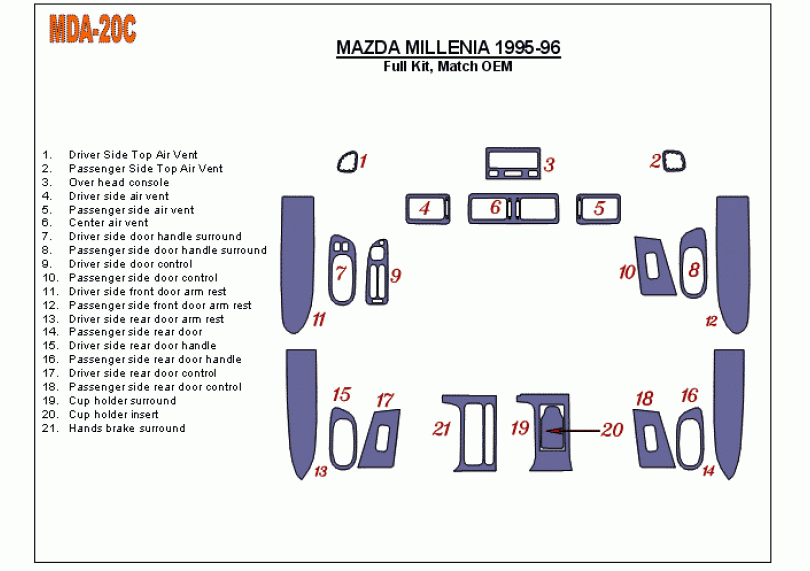 Mazda Millenia 1995 - 1996 Dash Trim Kit