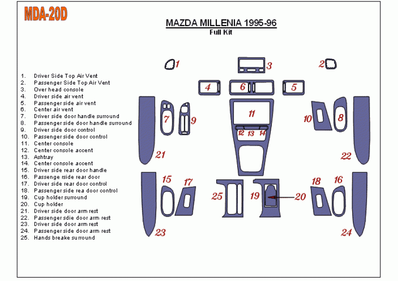 Mazda Millenia 1995 - 1996 Dash Trim Kit