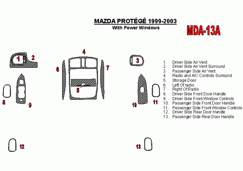 Mazda Protege 1999 - 2003 Dash Trim Kit
