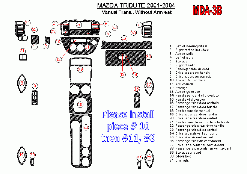 Mazda Tribute 2001 - 2004 Dash Trim Kit