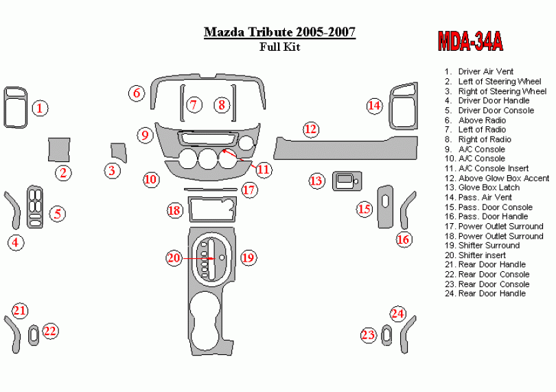 Mazda Tribute 2005 - 2007 Dash Trim Kit