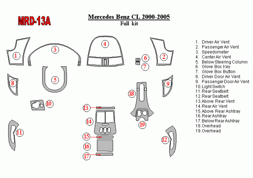 Mercedes Benz CL Class 2000 - 2005 Dash Trim Kit