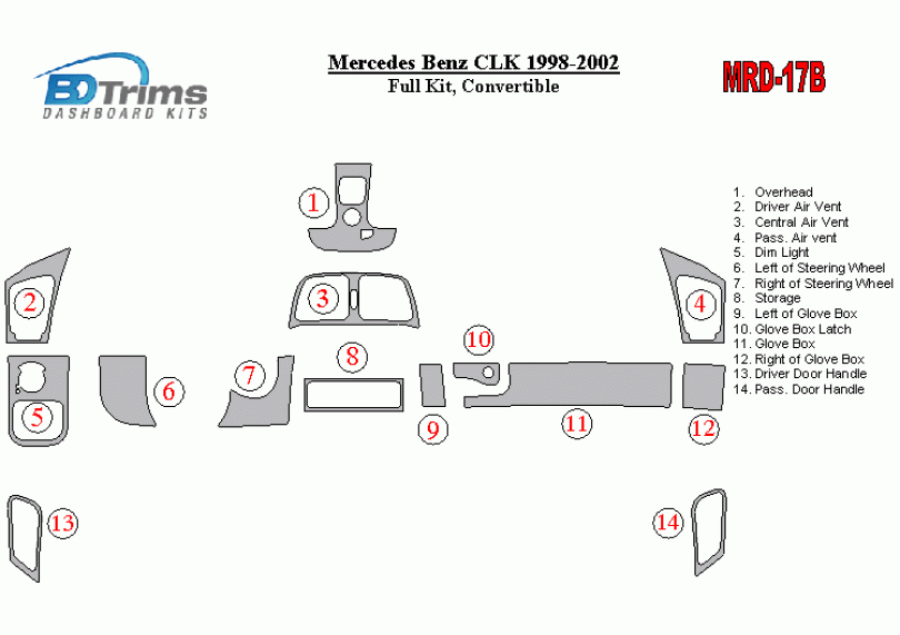 Mercedes Benz CLK 1998 - 2002 Dash Trim Kit