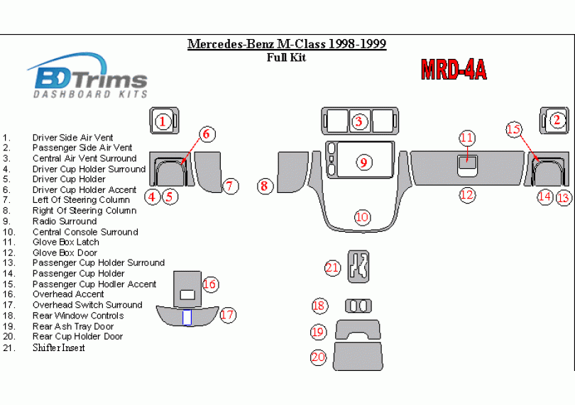 Mercedes Benz M Class 1998 - 1999 Dash Trim Kit