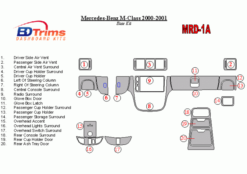 Mercedes Benz M Class 2000 - 2001 Dash Trim Kit