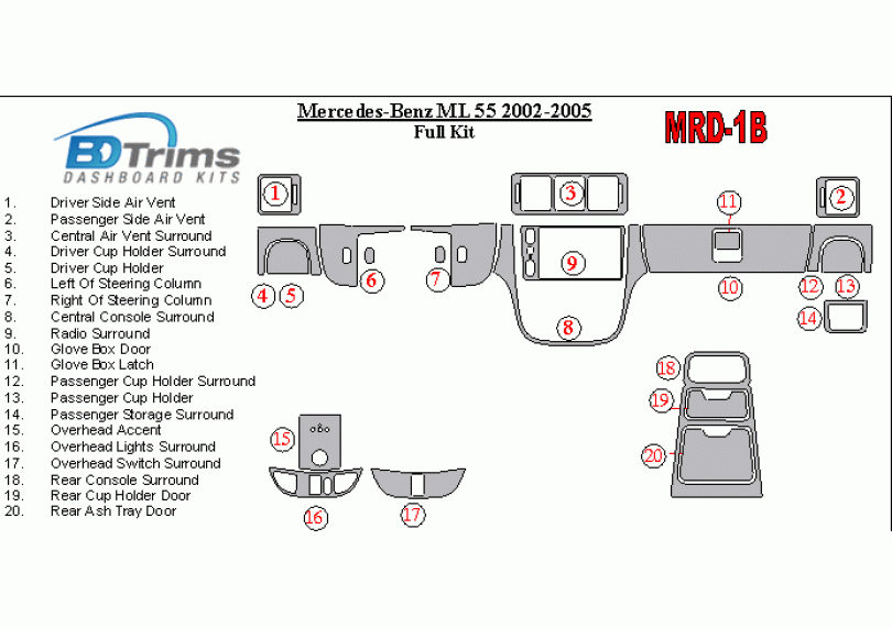 Mercedes Benz M Class 2002 - 2005 Dash Trim Kit