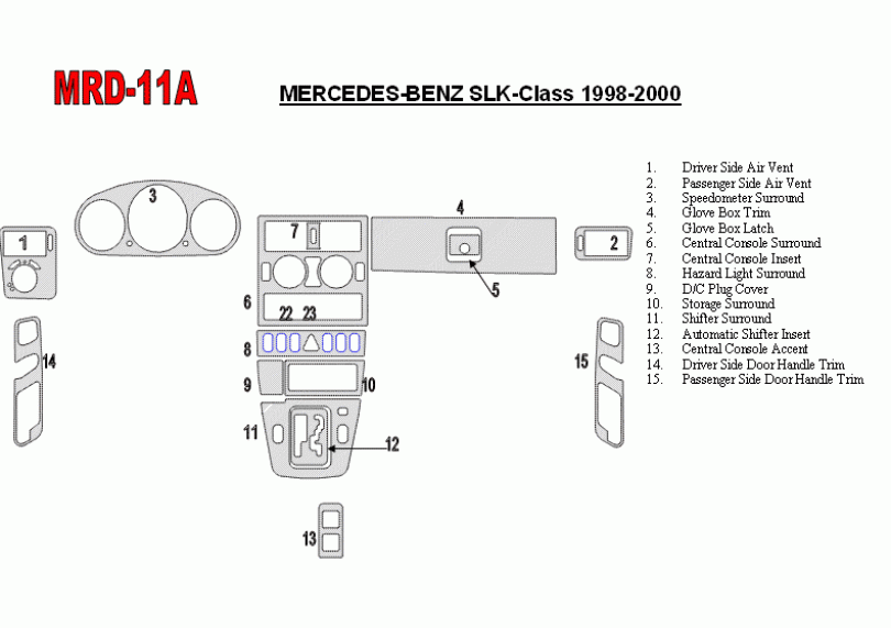 Mercedes Benz SLK 1998 - 2000 Dash Trim Kit