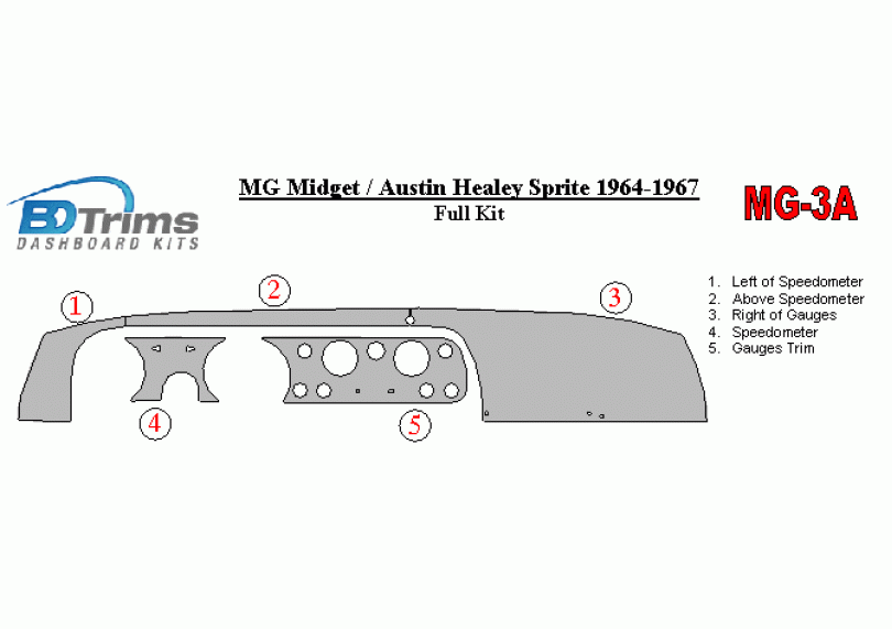 MG Midget/Austin Healey Sprite 1964 - 1967 Dash Trim Kit
