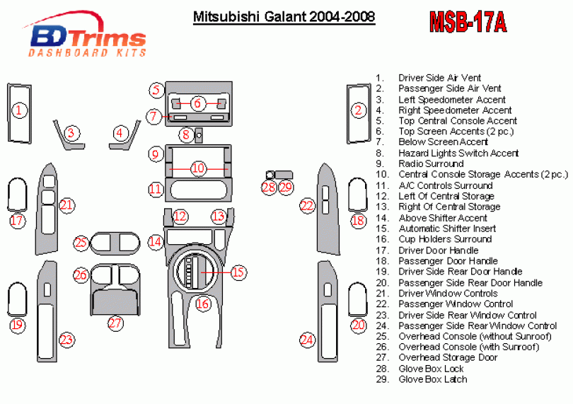 Mitsubishi Galant 2004 - 2008 Dash Trim Kit