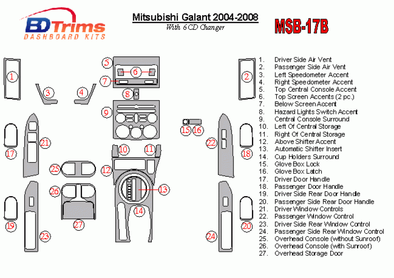 Mitsubishi Galant 2004 - 2008 Dash Trim Kit