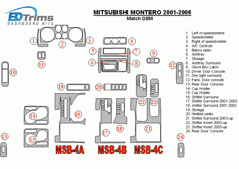 Mitsubishi Montero 2001 - 2006 Dash Trim Kit