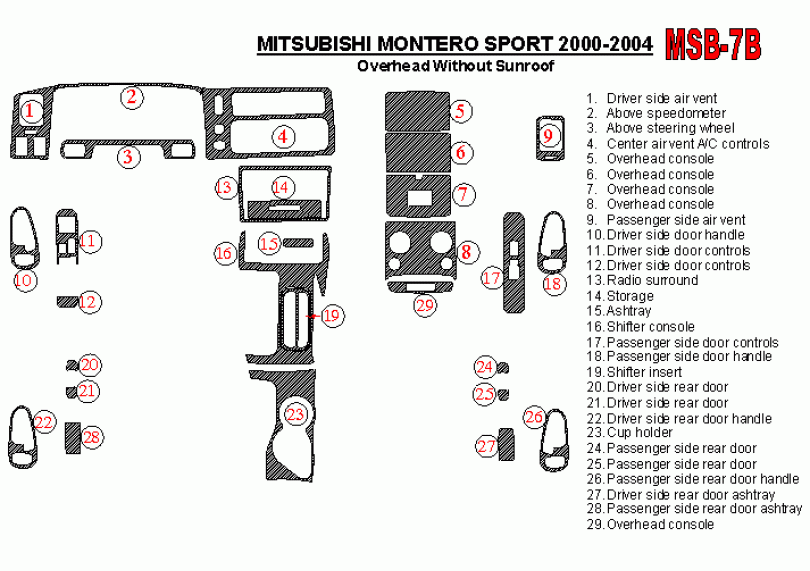 With Overhead, Without Sunroof, 29 Pcs.Materials