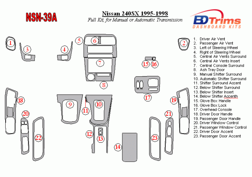 Nissan 240SX 1995 - 1998 Dash Trim Kit