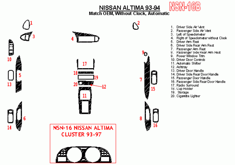 Nissan Altima 1993 - 1994 Dash Trim Kit