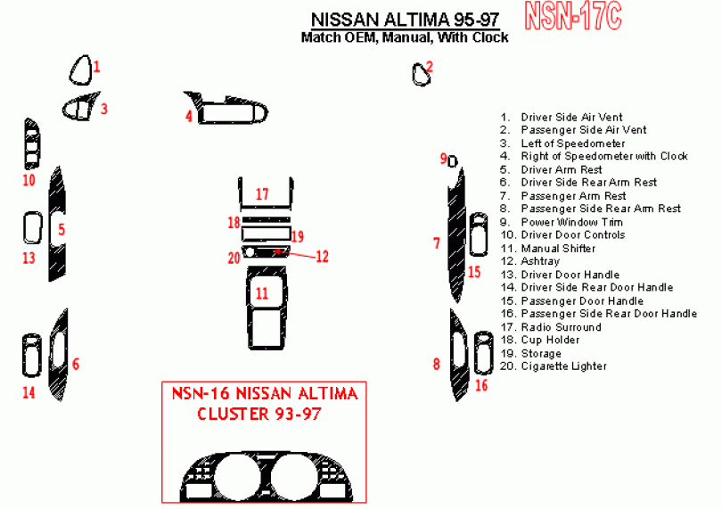 Nissan Altima 1995 - 1997 Dash Trim Kit