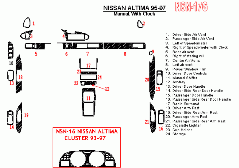 Nissan Altima 1995 - 1997 Dash Trim Kit