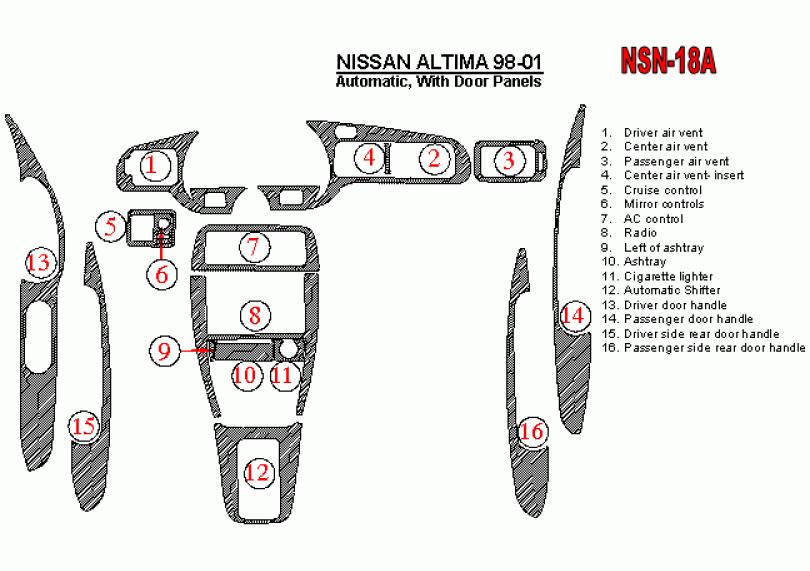Nissan Altima 1998 - 2001 Dash Trim Kit